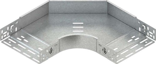 Bogen 90°, für Kabelrinnen, steckbar mit der CITO Kabelrinne RLVC..., zur Herstellung von horizontalen 90° Eckverbindungen, mit Rastschlaufen, zusätzlichen Verbinderlochungen, integriertem Stoßstellenverbinder und anteilmäßigem Befestigungszubehör. Zur Verwendung im Funktionserhalt bitte Zusatzvorschriften beachten! Verwendbar für : CITO Kabelrinne RLVC... und Kabelrinnen mit 60 mm Kantenhöhe Abmessungen (ca. Maße) H x B (lichtes InnenMaße) : 60 x 202 mm Innenholmradius R : 99 mm Werkstoff : Stahl, bandverzinkt nach DIN EN 10346