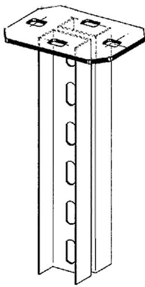 Hängestiel, doppel U-Profil mit angeschweißter Kopfplatte, System HDUF 50/..., für Ausleger zur ein- und beidseitigen Verlegung, beidseitige Anordnung der Ausleger nur höhenversetzt möglich. Aus statischen Gründen und um ein problemloses Aufsetzen der Schutzkappe zu ermöglichen, muss der Ausleger im Abstand von x=50 mm (Auslegerunterkante bis Hängestielende), oberhalb des Hängestielendes montiert werden. Achtung: Eingeschränktes Platzangebot zur Kabelrinnenbestückung (Länge des Hängestiels abzüglich Höhe des Auslegers)! Zur Verwendung im Funktionserhalt bitte Zusatzvorschriften beachten! für Ausleger : KTUM... = 400 mm Länge KTU... = 600 mm Länge für Ausleger : KTUG... = 400 mm Länge (Funktionserhalt) für Ausleger : KTU... = 400 mm Länge in Verbindung mit Konsolenadapter KAWG 12 (Funktionserhalt) Abmessungen (ca. Maße) Kopfplatte L x B x t : 140 x 80 x 5 mm Befestigungslochung : 13 x 20 mm mittiger Abstand : 100 mm U-Profil (doppelt mit 6 mm Abstand) : 50 x 22 x 2 mm Profillochung, einreihig : 12 x 30 mm mittiger Abstand : 50 mm Gesamtlänge L : 201 mm Werkstoff : Stahl, tauchfeuerverzinkt nach DIN EN ISO 1461