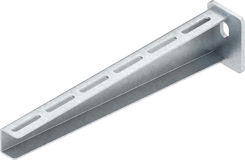 Hängestiel- und Wandausleger, standard, zur Wand- und Hängestielmontage, einschließlich galvanisch verzinkten anteilmäßigem Befestigungszubehör. Die Tragfähigkeitsangaben gelten nur bei ausreichender Verankerung mit dem tragenden Untergrund bzw. bei vorschriftsmäßigen Montagen an Hängestielen. Zur Verwendung im Funktionserhalt bzw. für Unterdecken mit brandschutztechnischen Anforderungen (Muster-Leitungsanlagen-Richtlinie MLAR 2/2015) bitte Zusatzvorschriften beachten! Der Einsatz des KTA... im Funktionserhalt ist nur in Verbindung mit KAWG 12 zu verwenden! VDE zertifiziert! Abmessungen (ca. Maße) Auflagehöhe H : 65 mm Auflagelänge L : 310 mm Tragfähigkeit F bei L/2 : 2,5 kN im System geprüft Werkstoff Ausleger : Stahl, tauchfeuerverzinkt nach DIN EN ISO 1461