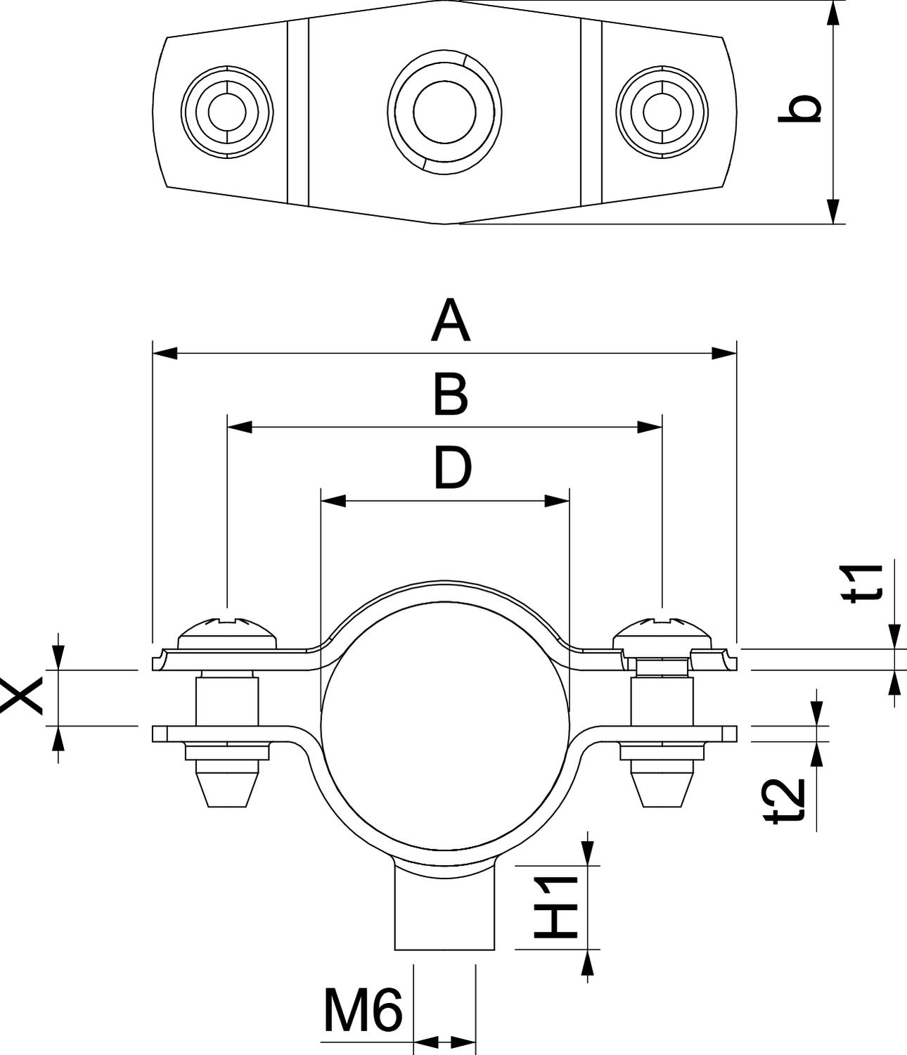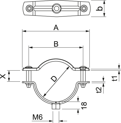 Abstandschelle zur Montage von Rohren und Kabeln an Wand, Decke und Boden. Mit selbstsicherndem Oberteil. Befestigung über Ansatz mit Innengewinde.