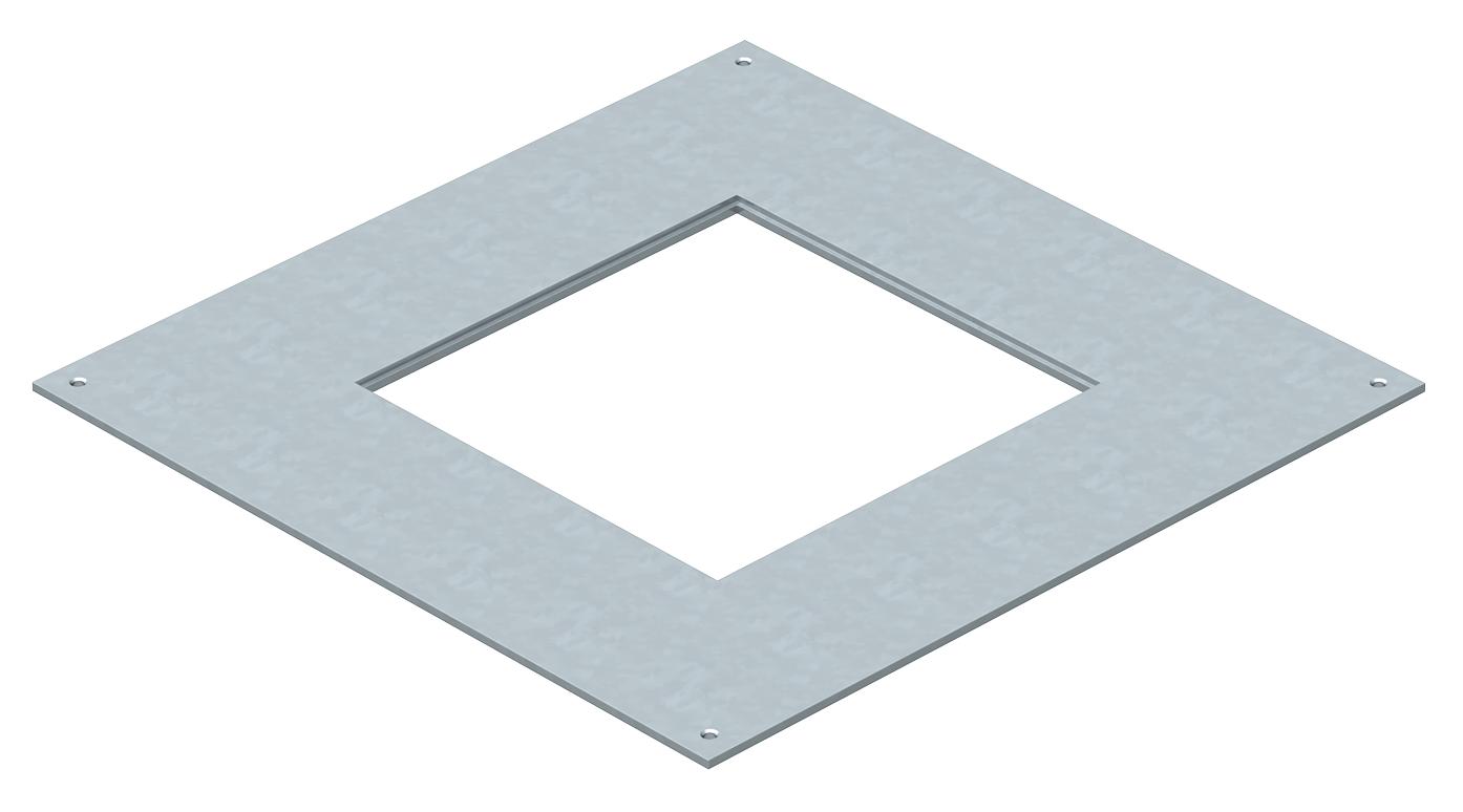 Montagedeckel für Unterflur-Zug- und -Abzweigdosen vom Typ UZD250-3 zum Einbau einer Einbaueinheit der Nenngröße 4. Einbauöffnung 3 mm vertieft zum nachträglichen Blindverschluss mit Deckelblindplatte.