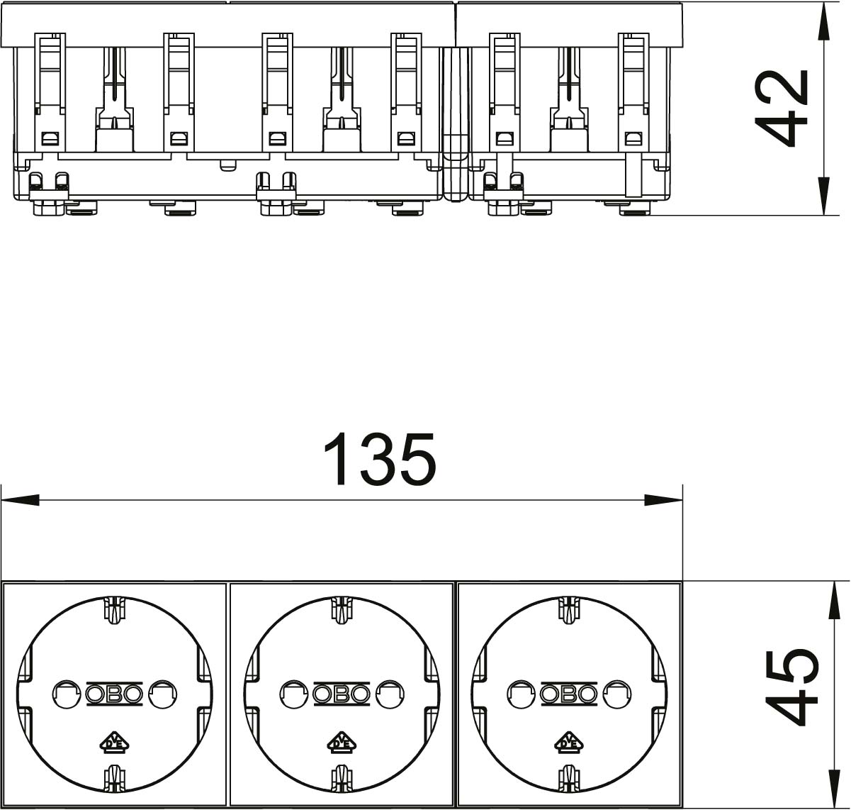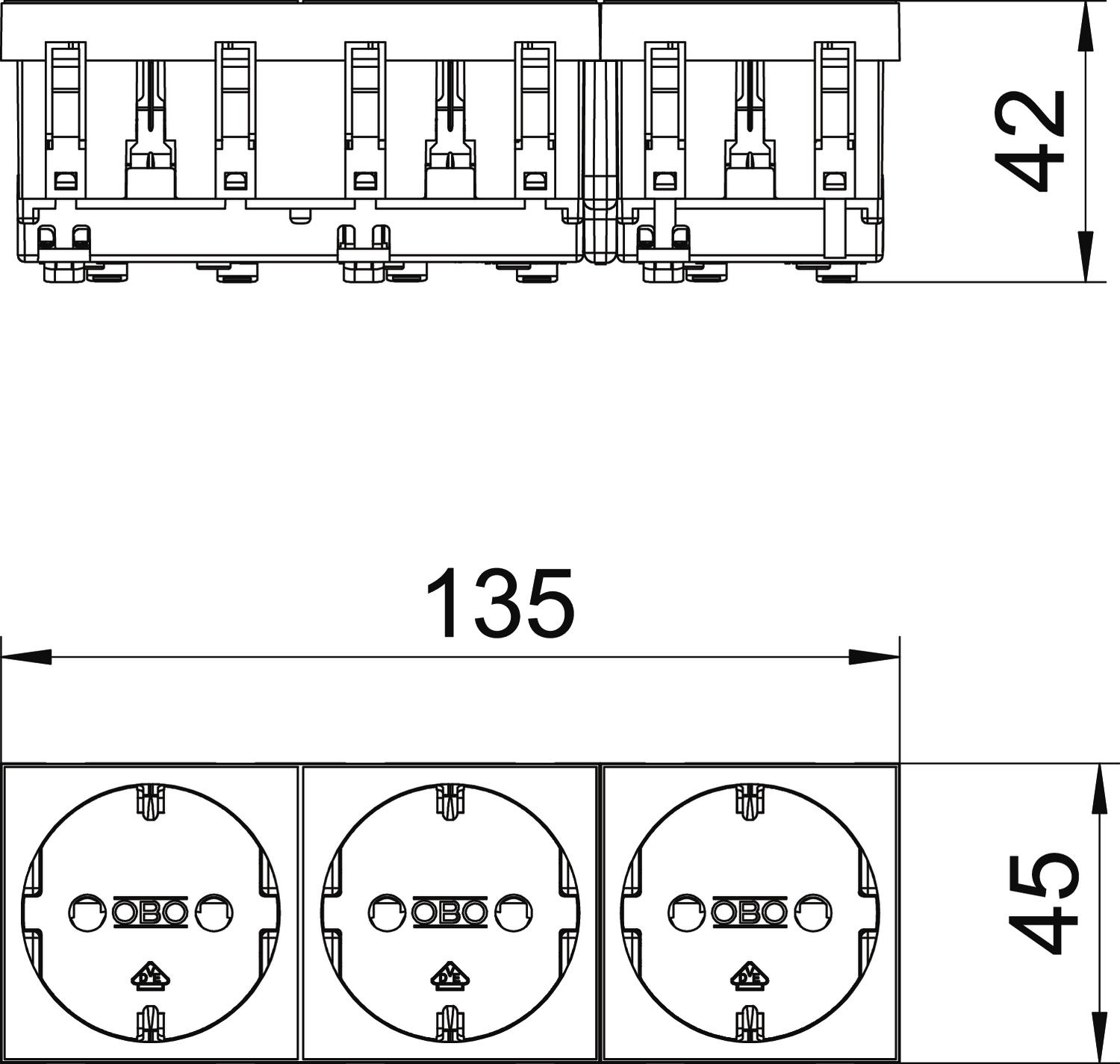 OBO Bettermann Vertr Steckdose 0 Grad, 3-fach Schutzkontakt STD-D0 RW3 - 6120042