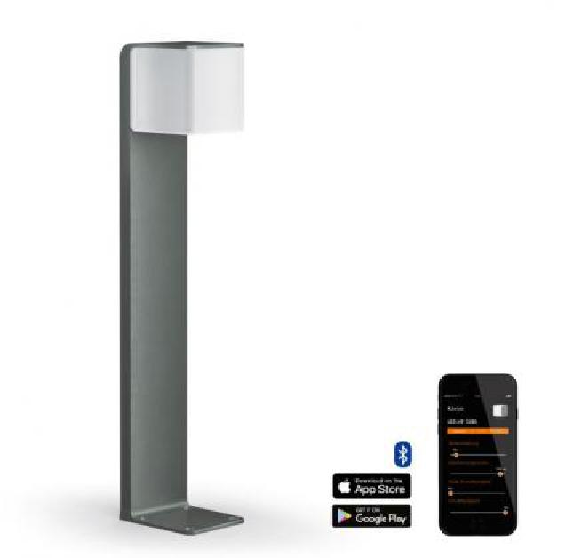 The LED stand sensor luminaire performs a soft-light start, which protects the eyes. It can be used for night light (10-50%) and continuous light (selectable, 4h). With its color temperature of 3000K it provides warm white light. The LED outdoor luminaire has a 63.25 cm high base made of durable aluminum finished in anthracite. The luminaire housing is made of UV-resistant plastic and is IP44 protected. In addition, the luminaire has the impact resistance IK03.