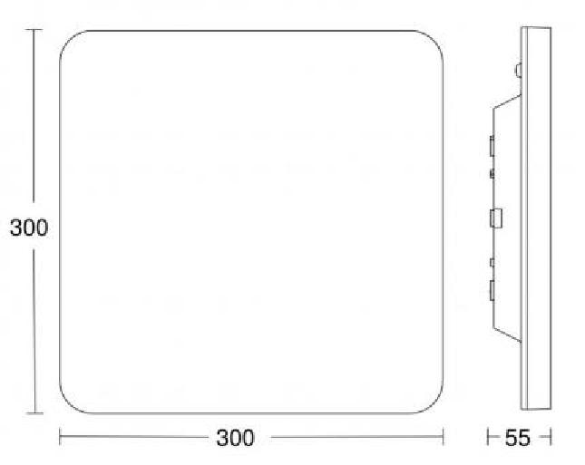 Connected lighting squared. In conjunction with the master version, the slave version of the RS PRO Connect R20 Q without sensor is easily interconnected via Bluetooth to create lighting groups. Perfect light distribution – ideal for corridors, hallways and stairwells. Output: 16 W providing 1950 lm of light. 4000 K, Dimensions: 300 x 300 x 55 mm
