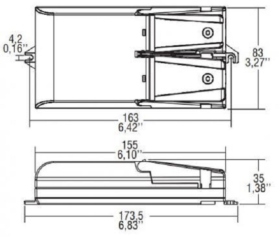 The input and output terminal blocks are (wire cross-section up to 1.5-2.5 mm2 / AWG15-AWG13). Clamping screws for cables with a minimum diameter of 3 mm up to a maximum of 8 mm are mounted on primary and secondary circuits. The LED driver is suitable for recessed and surface mounting as well es mounting with a strain relief.