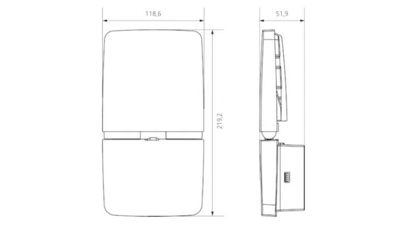 The IP55-protected aluminium LED spotlight theLeda P12L by Theben is ideal for outdoor use. It emits diffused, glare-free light with aura effect and a color temperature of 4000 K. The spotlight consists of a LED panels with 11 W (900 lm), which corresponds to approx. 140 W of a halogen lamp. Its efficiency is 82 lm/W. By master-slave function, all devices can be networked with each other.