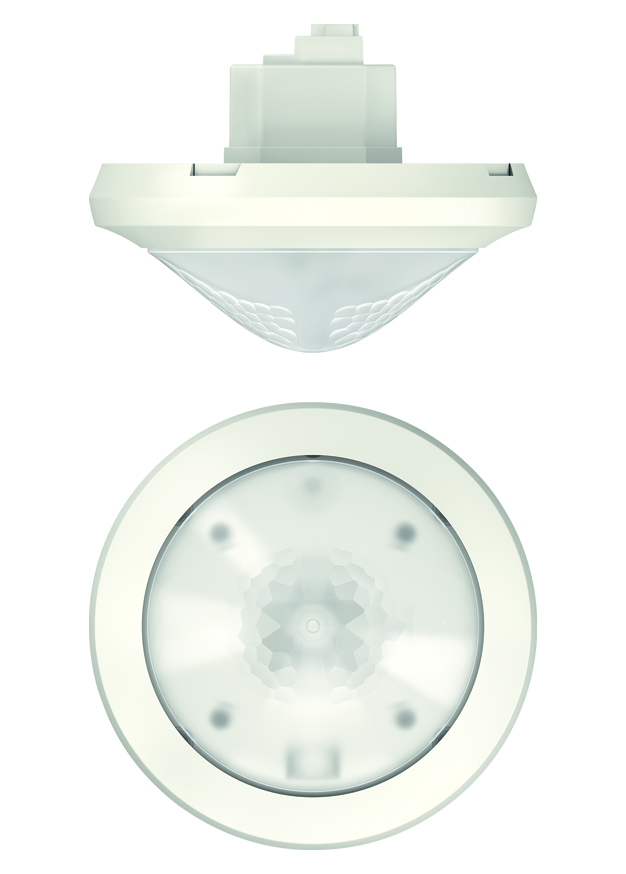 KNX-UP-Präsenzmelder für Deckenmontage, KNX-Schnittstelle, Erfassungsbereich 30 x 4,5 m umschaltbar auf 15 x 4,5 m (für gehende Personen) bei 3 m Montagehöhe, Montagehöhe bis zu 6 m, 2 Lichtkanäle mit 2 Lichtmessungen, Konstantlichtregelung oder Schaltbetrieb mit dimmbarer Beleuchtung, Stand-by Dimmwert stufenlos von 1-25 % einstellbar als Orientierungslicht, 2 Präsenzkanäle für HKL, Auraeffekt, Lauflicht-Funktion, Gehrichtungserkennung, Betrieb als Voll- oder Halbautomat umschaltbar, Teach-in-, Treppenlicht-Funktion, Kurzzeit-Präsenz, fernbedienbar, Lichtmessung 10-3000 Lux, einfacher Abgleich der Lichtmessung,Empfindlichkeit einstellbar, Schutzart IP 54, Gehäuse weiß