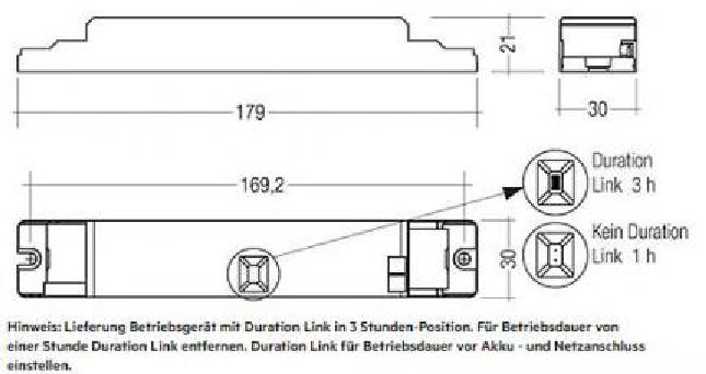 The EM converterLED BASIC 204 NiCd / NiMH 250V emergency lighting LED driver from Tridonic's BASIC series is designed for installation in LED modules with a forward voltage of 50 - 250 V. The LED driver is used for self-contained emergency lighting and has a rated duration of 1 or 3 hours (selectable with connector). The LED ECG has a "low profile" housing (21 x 30 mm cross section).