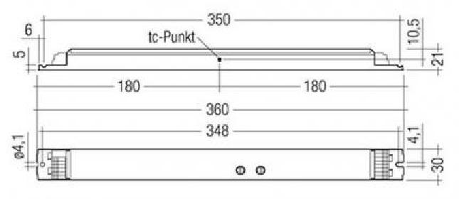 The rated power is up to 80 watts. The LED ECG can be used for LED modules with a forward voltage of 50 – 230 V in mains operation and 50 – 200 V in emergency operation .
