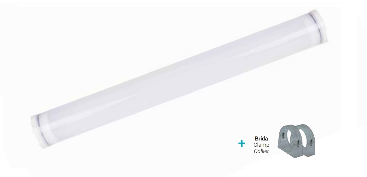 Die LED-Leuchte ist aus Polycarbonat gefertigt und besitzt ABS-Klemmen einschließlich Befestigungsflanschen, die die Montage erleichtern. Dank ihres IP67-Schutzes ist die LED-Feuchtraumleuchte umfassend gegen Staub und gegen das Eindringen schädlicher Wassermengen geschützt. Außerdem hat die Airfal ORION-Leuchte den Stoßfestigkeitsgrad IK09.