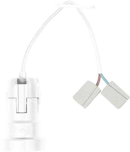 Baustellenfassung mit Kabel schwarz 0,2m H03VV-F 2x0,75mm² Seite 1: E-27 Fassung in Kunststoff Seite 2:Steckklemme grau 250V 4A T180 lose verpackt.