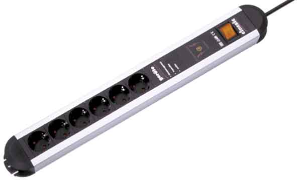PRIMO Steckdosenleiste 6xSchutzkontaksteckdosen ohne Schalter 1xGerätevollschutz Zuleitung 2,0m H05VV-F 3G1,5mm² schwarz mit Schutzkontaktwinkelstecker verpackt im Karton