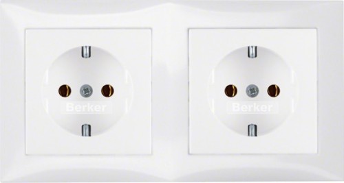 Steckdosen-Kombination Schutzkontakt 2fach mit Rahmen S.1 polarweiß, glänzend.Steckdose Schutzkontakt® 2-fach Kombination mit Rahmen, zur Installation in Kabelkanal-Einbaudosen und in handelsübliche 2-fach Hohlwanddosen, sowie in 2-fach Up Dosen, ohne Spreizkrallen, 2 x 1-fach, durchverdrahtet, mit Steckklemmen.