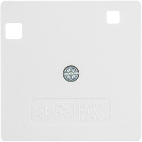 Zentralstück für FI-Schutzschalter System 50x50 mm polarweiß matt/samt.Zentralstück für FI-Schutzschalter. Hinweis: Nur mit Adapterring für Zentralstück 50 x 50 mm des Programms zu verwenden.
