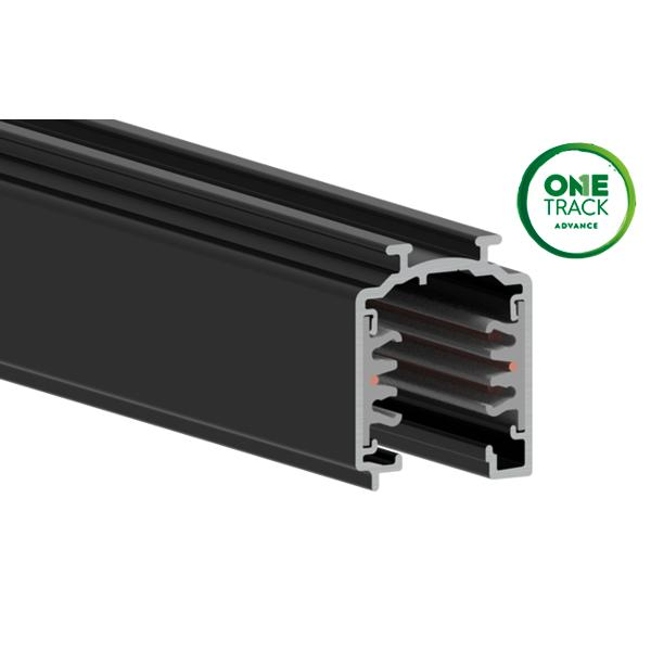 3-Phasen-Stromschiene ONETRACK DALI / schaltbar, Länge 1.000 mm, schwarz, rechteckig. Ausführung in kompakter Bauform für die harmonische Implementierung in stimmige, architektonische Raumkonzepte. Montageart: Anbaumontage, Material: Aluminium, Schutzart raumseitig: nach DIN EN 60529: IP20, Schutzklasse: (EN 61140) I, Spannung: 230V AC 50Hz.