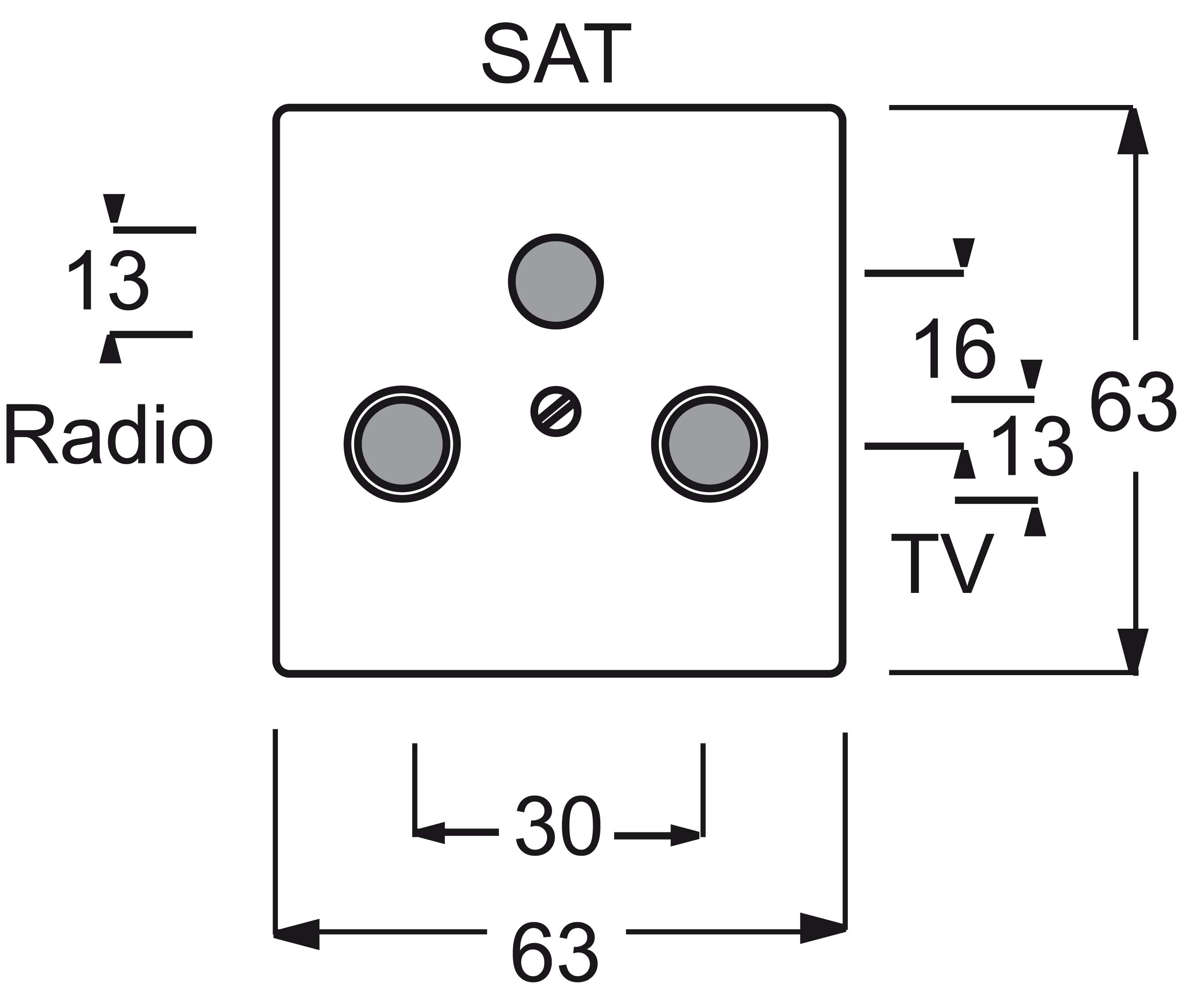 Mit 2 Anschlüssen. Nach DIN 45330. Radio/TV/SAT. Mit zentraler Befestigung M3. Dritte Öffnung ausbrechbar. Siehe Einsätze für Antennensteckdosen.