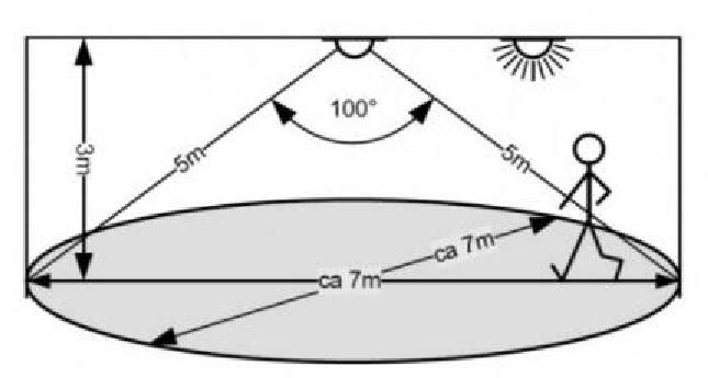 Der PIR-Sensor erfasst max. 5m in einem Radius von 100° horizontal und 64 Zonen. Es handelt sich um ein Einbaugerät, die Montage erfolgt per Bohrung in 25-27mm. Bei der Installation sind die einschlägigen Bestimmungen und die anerkannten Regeln der Technik einzuhalten. Das Gehäuse hat den IP44-Schutz.