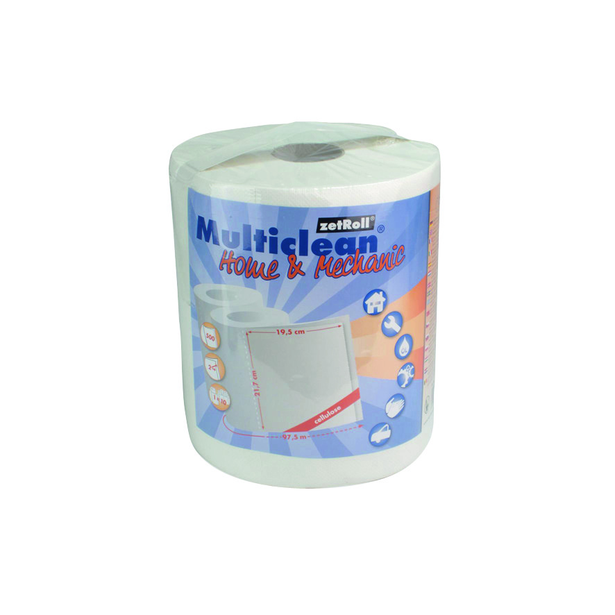 Werkstattwagen-Handtuchrolle, weiß, 2-lagig, einzelverpackt, mit Einleger und Tragegriff, nassfest, saugstark, fusselarm. Abriss 500 à 19,5 cm. Maße 97,5 mx21.7cm; VE 2