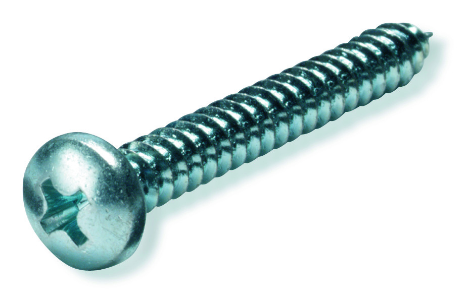 Linsen-Blechschraube nach ISO 7049, EN 27049 bzw. DIN 7981, Form H mit Spitze, verzinkt, Linsenkopf mit Phillips-Kreuzschlitz. Ausführung: Ø- 3,5 mm