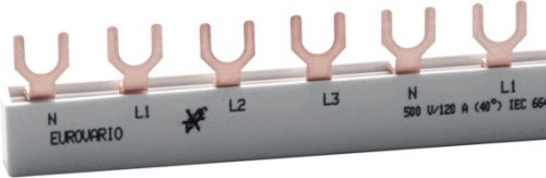 Diese Komponenten für die Verdrahtung von Schutzschaltern in industriell, gewerblich und privat genutzten Elektroverteilern verringern den Installationsaufwand erheblich. Die fertig abgelängten Sammelschienen eignen sich für die versorgungsseitige Verbindung von Fehlerstromschutzschaltern, Leitungsschutzschaltern und FI-/LS-Kombinationen auf der Unterseite der Geräte. Die Schienen sind in Gabelbauform ausgeführt und in einer großen Variantenvielfalt in ein- bis vierpoliger Ausführung (z. T. mit Platz für Hilfsschalter) erhältlich. Der Berührschutz EV-S BS deckt nicht verwendete Anschlüsse ab. Eigenschaften: einsetzbar zur Verbindung von Fehlerstromschutzschaltern, Leitungsschutzschaltern und FI/LS-Kombinationen