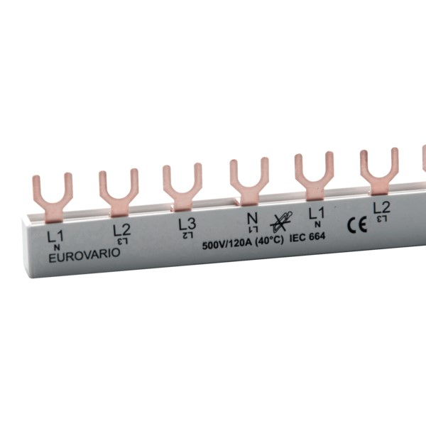 Diese Komponenten für die Verdrahtung von Schutzschaltern in industriell, gewerblich und privat genutzten Elektroverteilern verringern den Installationsaufwand erheblich. Die fertig abgelängten Sammelschienen eignen sich für die versorgungsseitige Verbindung von Fehlerstromschutzschaltern, Leitungsschutzschaltern und FI-/LS-Kombinationen auf der Unterseite der Geräte. Die Schienen sind in Gabelbauform ausgeführt und in einer großen Variantenvielfalt in ein- bis vierpoliger Ausführung (z. T. mit Platz für Hilfsschalter) erhältlich. Der Berührschutz EV-S BS deckt nicht verwendete Anschlüsse ab.