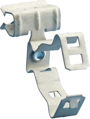 Federstahlbefestigung mit Schnappverschlusssystem, die das Kabelschutzrohr neben dem Flansch trägt. 1? EMT oder 30 bis 35 mm Kabel oder Kabelschutzrohr an 5/16 1/2? oder 8 bis 14 mm Flansch, Seitenmontage.