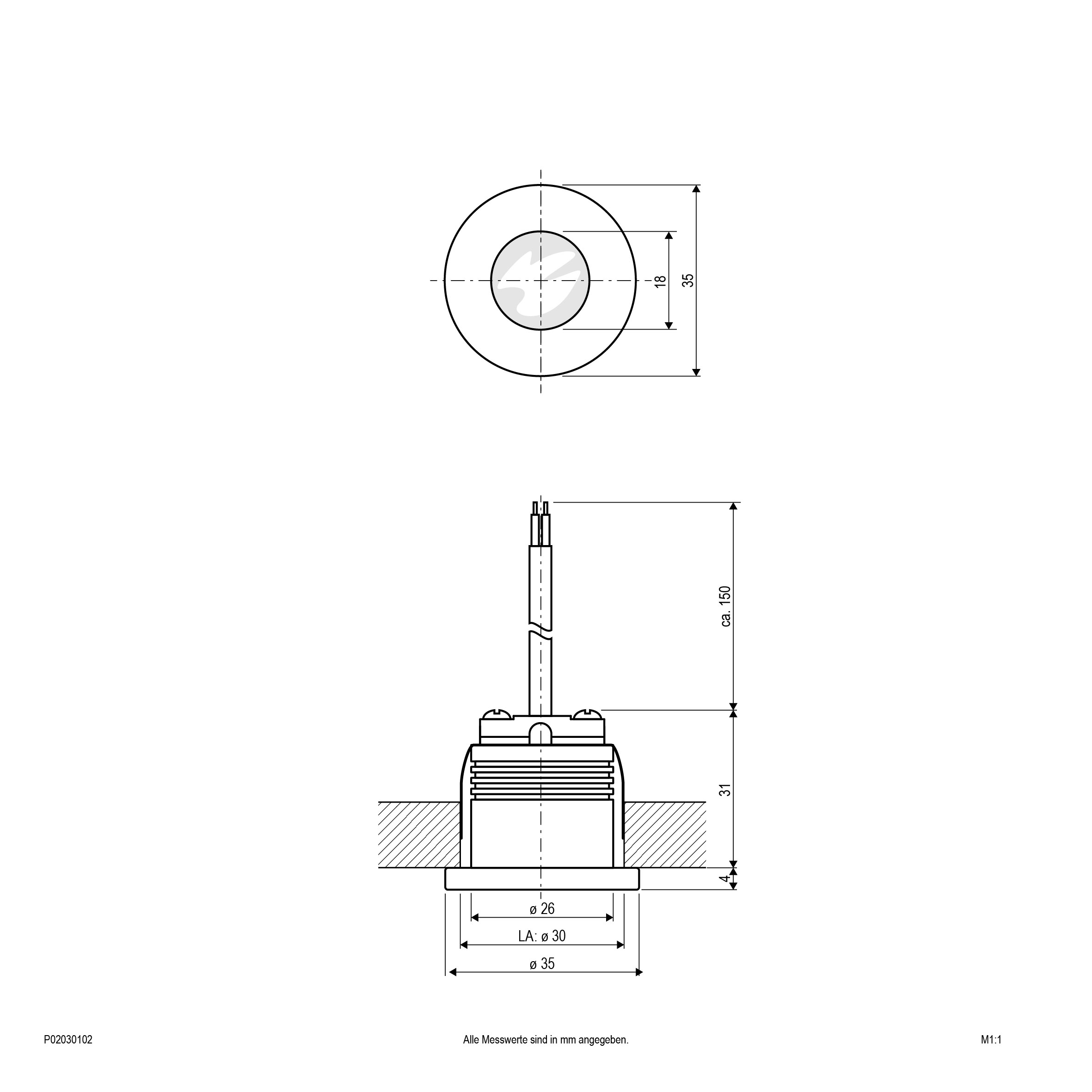 | Einbaudurchmesser | 30 mm |