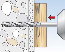 Der fischer Nageldübel N-S mit Senkkopf besteht aus einem hochwertigen Nylondübel und einer galvanisch verzinkten Nagelschraube. Diese sind für eine schnelle Montage bereits vormontiert. Der Nageldübel wird in der zeitsparenden Durchsteckmontage durch das Anbauteil eingeführt. Beim Einschlagen der Nagelschraube spreizt die Dübelhülse auf und verankert sicher im Baustoff. Der fischer Nageldübel N-S mit Senkkopf ist ideal für die Befestigung von Holzkonstruktionen in allen Baustoffen im Innenbereich.