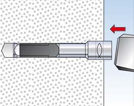 Der fischer Porenbetonanker FPX-I wird aus galvanisch verzinktem Stahl hergestellt. Nach dem Vorbohren wird der FPX-I nur mit dem Hammer eingeschlagen. Eine Bohrlochreinigung ist nicht notwendig. Der fischer Porenbetonanker wird mit einem Sechskantschlüssel mittels Akku-Schrauber oder einer Ratsche angezogen. Dadurch wird der Konus in die Spreizhülse eingezogen. Dabei erzeugen die vier Flügel einen Hinterschnitt im Bohrloch. Nach der Verspreizung wird der Sechskantschlüssel automatisch ausgeklinkt. Der fischer Porenbetonanker FPX-I ist ideal geeignet für die Befestigung von abgehängten Decken, Geländern oder Küchenschränken in Porenbeton.