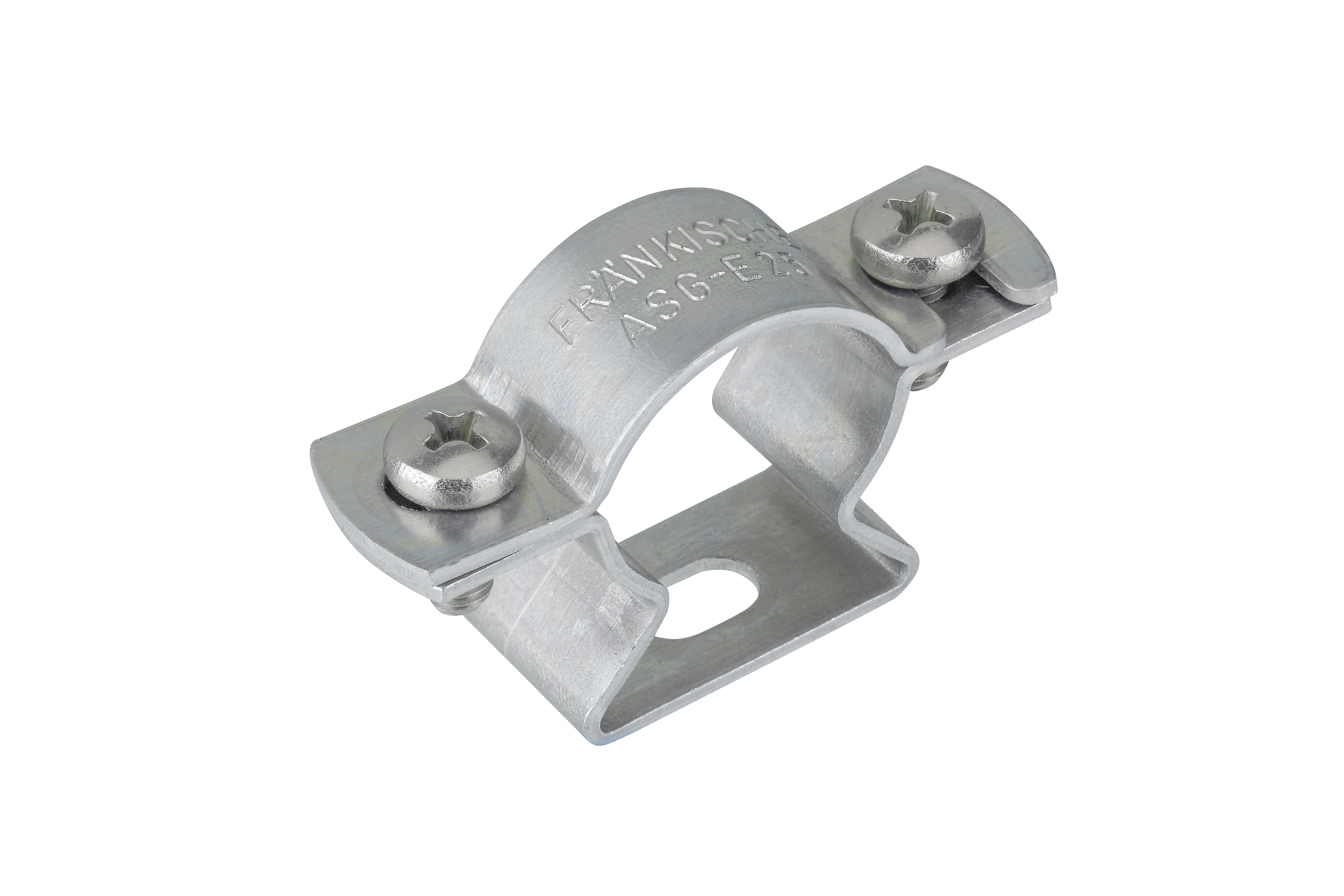 ASG-E ist eine Aluminium-Abstandschelle, mit Linsenschrauben M5x12 aus Edelstahl. Verwendet wird diese Abstandschelle für die Aluminiumrohre Alu Gewinde-ES und Alu Steck-ES. VDE 0605 DIN EN 61386-21