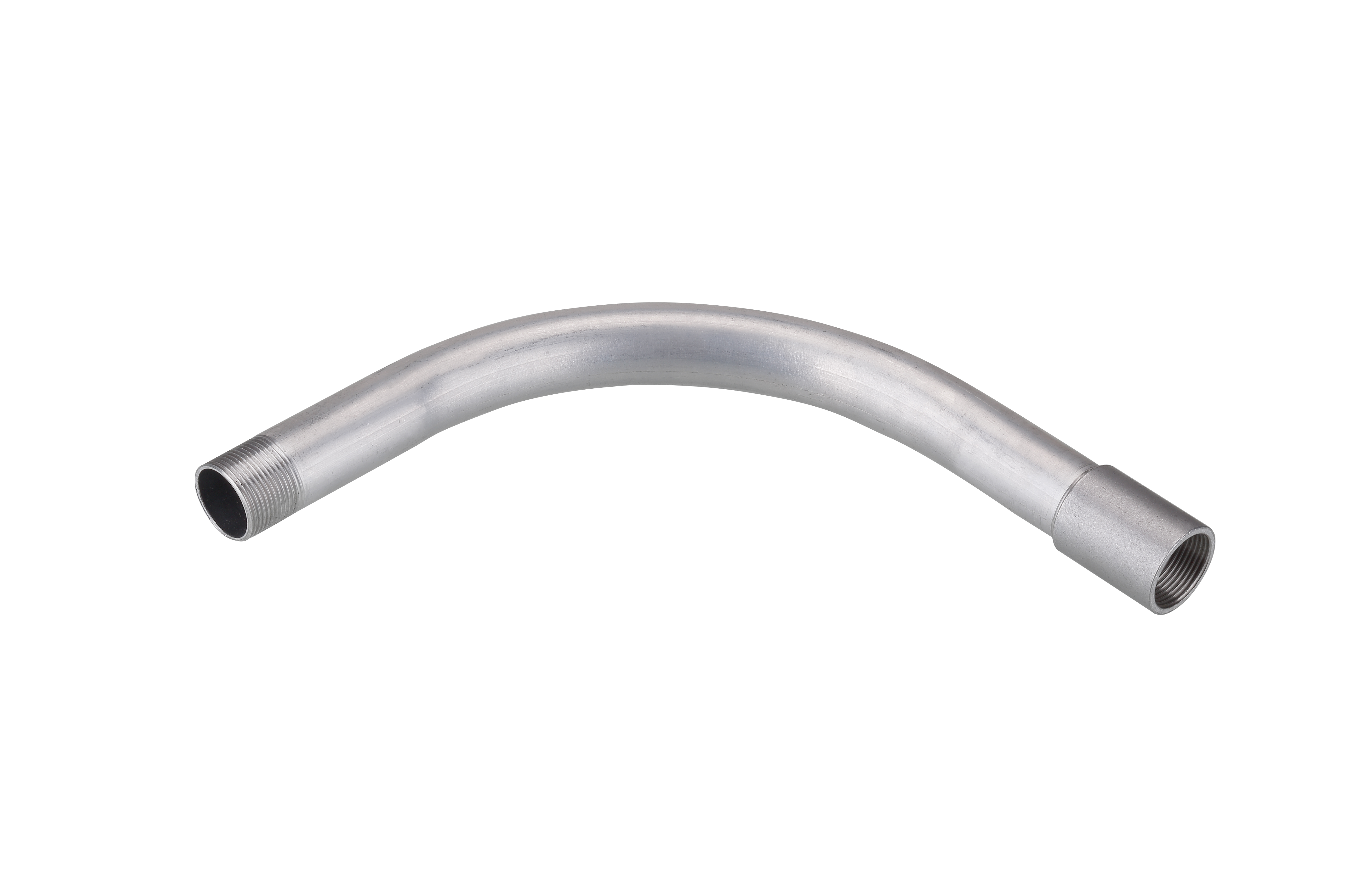 ABG-E ist ein Aluminium-Gewindebogen aus stranggepresstem Aluminium, beidseitig mit Gewinde, einseitig aufgeschraubte Muffe (AMG-E). Verwendet wird dieser Gewindebogen für das Aluminiumrohr Alu Gewinde-ES. Der Vorteil liegt in der sehr schweren Druckfestigkeit. VDE 0605 DIN EN 61386-21 Klassifizierung: 55561 Mindestdruckfestigkeit: 4000N/5cm