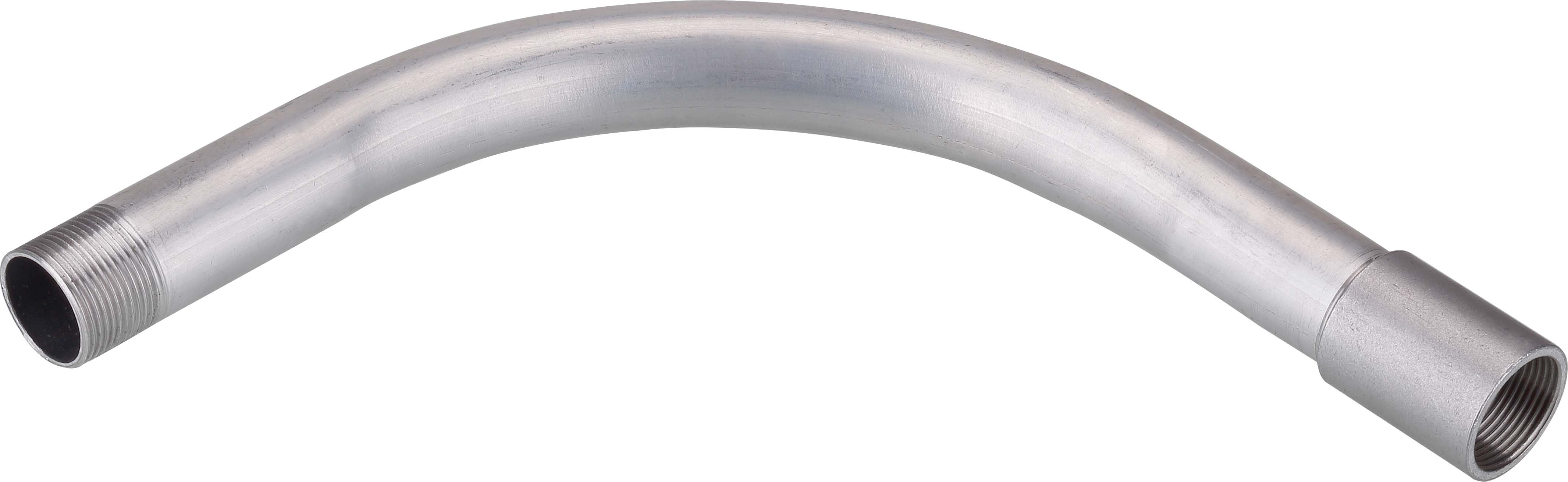 ABG-E ist ein Aluminium-Gewindebogen aus stranggepresstem Aluminium, beidseitig mit Gewinde, einseitig aufgeschraubte Muffe (AMG-E). Verwendet wird dieser Gewindebogen für das Aluminiumrohr Alu Gewinde-ES. Der Vorteil liegt in der sehr schweren Druckfestigkeit. VDE 0605 DIN EN 61386-21 Klassifizierung: 55561 Mindestdruckfestigkeit: 4000N/5cm