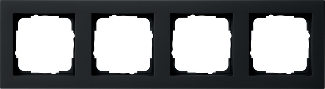 Abdeckrahmen Gira E2 Schwarz matt 4fach Merkmale: Bruchsicher. Hinweise : Auch für Kanalinstallationen geeignet. Abdeckrahmen (1- bis 5fach) in Verbindung mit Dichtungsset auch für die Montage wassergeschützt Unterputz IP44 geeignet.