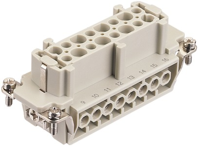 Einsätze, Schraubanschluss, Buchse, Polycarbonat (PC), RAL 7032 (kieselgrau), Bemessungsstrom: 16 A, Baugröße: 16 B, Kontakte: 16, Leiterquerschnitt: 0,75...2,5 mm², Kupferlegierung, versilbert