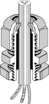 Anbau-Kabelstutzen für Vorprägungen M 16 und Dichtbereich Ø 3-10 mm.