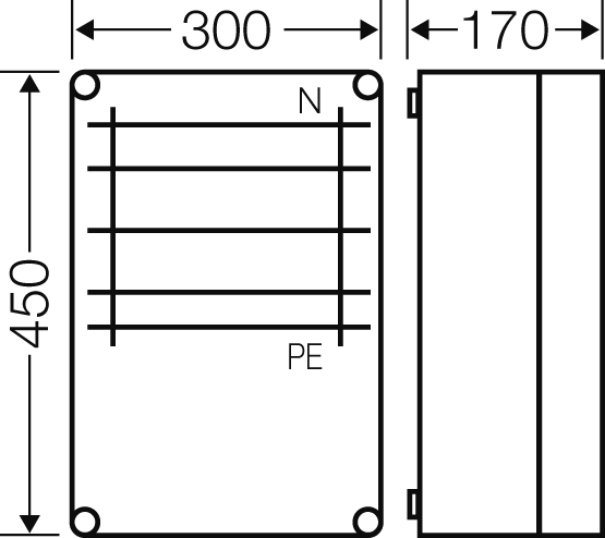 Gehäuse für den Bau von Energie-Schaltgerätekombinationen bis 630 A oder als Einzelgehäuse. Aus hochwertigem Polycarbonat schutzisoliert. Wanddurchführungen mit großen Öffnungen für die elektrische Verbindung der Gehäuse untereinander. Kabeleinführung an allen Gehäusewänden über metrische Vorprägungen oder Anbauflansche. Gehäuse zur Wandbefestigung auch über Außenlaschen oder mit Montageschienen. Gehäuse mit Sammelschienen, ohne Gerät, ohne Klemmen. Deckelverschlüsse für Werkzeugbetätigung.