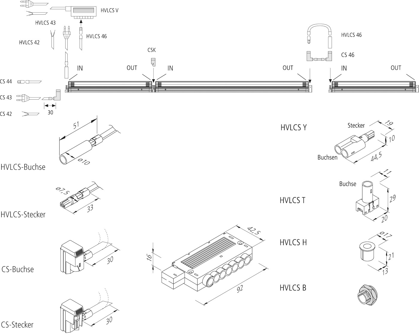Verbindungsleitung zum waagerechten Aufrasten an LED EcoLite Leuchten