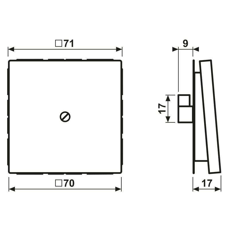 (kpl. mit Tragring, Schraubbefestigung) Öffnung für Leitungen mit max. 8 mm Ø Material: Duroplast Maße (B x H): 70 x 70 mm