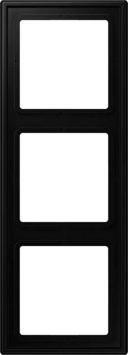 Rahmen 3fach, graphitschwarz matt für waagerechte und senkrechte Kombination Mit Dichtungsflansch Art.-Nr.: 551 WU ist der Schutzgrad IP 44 gewährleistet. Material: Duroplast lackiert Maße (B x H): 81 x 223 mm