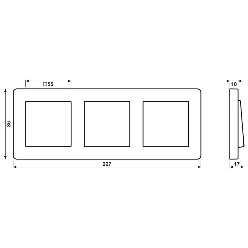 Rahmen 3fach, alpinweiß für waagerechte und senkrechte Kombination für die Serie A 1fach-Rahmen auch für British-Standard-Installationen geeignet (Tragring 80 x 80) Bitte möglichst mit Abdeckungen aus Thermoplast (bruchsicher, hochglänzend) kombinieren. IP20 Material: Thermoplast Maße (B x H): 85 x 227 mm