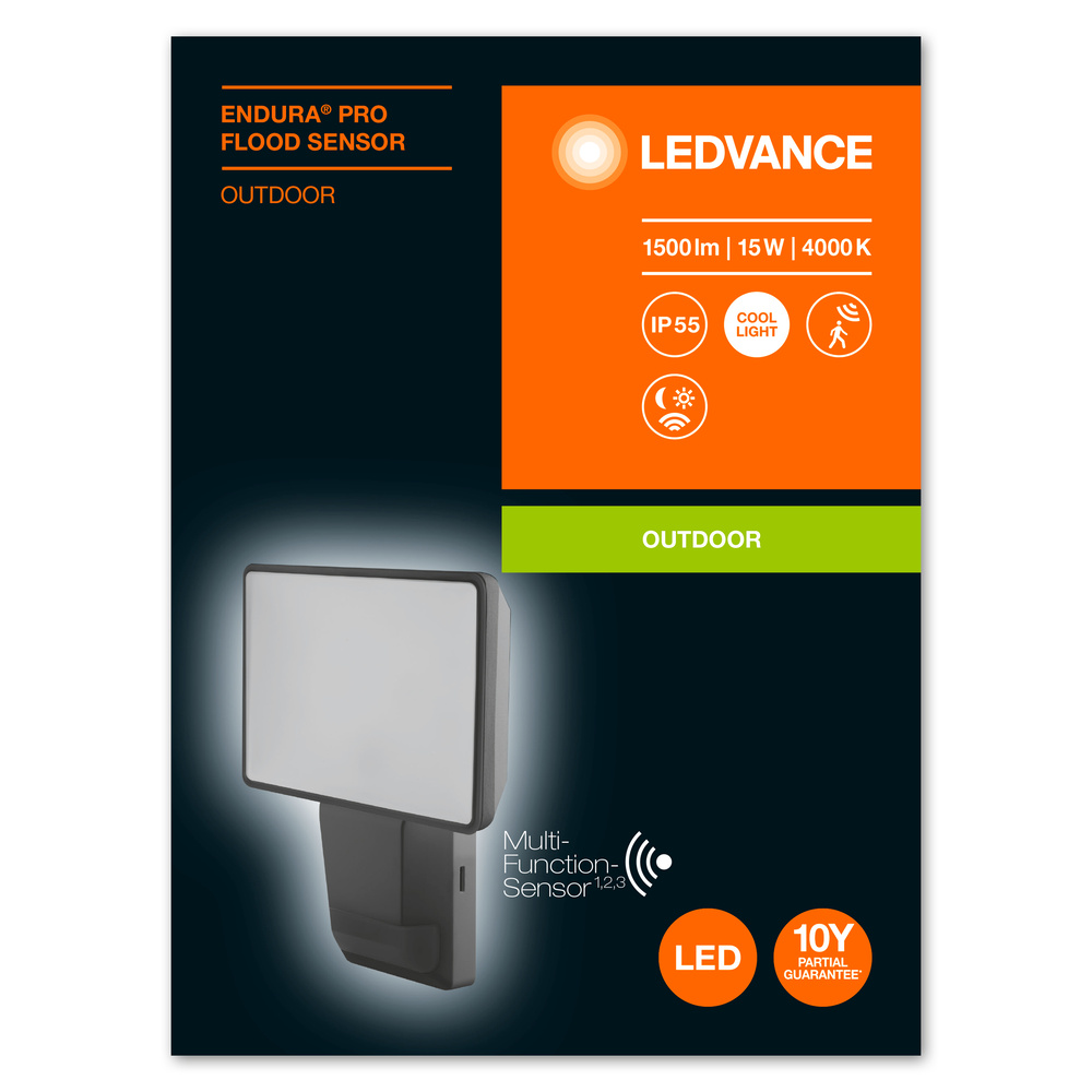 Ledvance Dekorative LED-Außenleuchte ENDURA PRO FLOOD SENSOR 15W 840 IP55 DG - 4058075228801