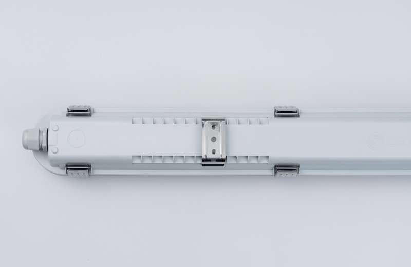 Feuchtraumleuchten, klassische Form. Produkteigenschaften: Hohe Lichtausbeute: bis zu 139 lm/W. Ausstrahlungswinkel: 110°. Produktvorteile: Flimmerarmes Licht ≤ 10 %. Gleichmäßige Lichtverteilung. Bis zu 60 % Energieersparnis (verglichen mit Leuchten, die Leuchtstofflampen verwenden). Einfache Installation, werkzeugloser Anschluss. 5 Jahre Garantie. Anwendungsgebiete: Industrie- und Lagerareale. Parkplätze und Unterführungen. Garagen. Werkstätten, Fertigungsstraßen. Technische Ausstattung: Klammern aus Edelstahl und Sicherheitsschrauben enthalten. Montagezubehör enthalten (Abhängungs-Kit, Diebstahlschutz-Kit)