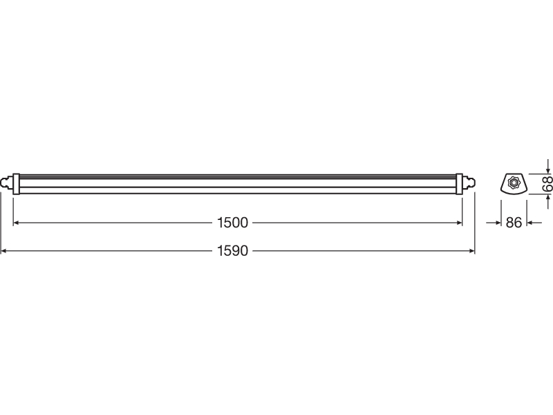 Feuchtraumleuchte, durchverdrahtet (L, N, E). Produkteigenschaften: Hohe Lichtausbeute: bis zu 120 lm/W. Schutzart: IP66. Ausstrahlungswinkel: 120°. Durchverdrahtung 3x1,5mm² bereits installiert. Gehäuse aus Polycarbonat. Produktvorteile: Gleichmäßige Lichtverteilung. Bis zu 50 % Energieersparnis (verglichen mit Leuchten, die Leuchtstofflampen verwenden). Einfache Installation dank Montageklammern, die frei an der Leuchte positioniert werden können. Einfacher Zugang zum Anschlussterminal dank Endkappe mit Twist-and-Lock-Mechanismus. Werkzeugloser elektrischer Anschluss dank Push-Button-Anschlussklemme. 5 Jahre Garantie. Anwendungsgebiete: Industrie- und Lagerareale. Parkplätze und Unterführungen. Garagen. Werkstätten, Fertigungsstraßen. Technische Ausstattung: Klammern aus Edelstahl und Sicherheitsschrauben enthalten. Montagezubehör enthalten (Abhängungs-Kit, Diebstahlschutz-Kit)