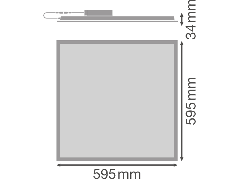 Quadratische Einlege-Leuchte, 600 x 600 mm. Produkteigenschaften: Lebensdauer (L70/B50): bis zu 50.000 h (bei 25 °C). Rahmen aus stranggepresstem Aluminium. Polystyrol-Diffuser. Produktvorteile: Leuchte mit gutem Preis-Leistungs-Verhältnis. Flimmerarmes Licht dank speziellem elektronischen Vorschaltgerät. Energieeinsparung dank Systemlichtausbeute von bis zu 100 lm/W. Externer Treiber für erweiterte Flexibilität und einfache Installation. Versionen mit DALI-EVG verfügbar. Anwendungsgebiete: Direkter Ersatz für Leuchten mit Leuchtstofflampen. Büroräume, Konferenzräume. Empfangsbereiche, Eingangsbereiche, Korridore, Aufzüge. Geeignet für Deckeneinbausysteme mit einem Rastermaß von 600 x 600 mm. Technische Ausstattung: Zubehör für verschiedene Einbaumöglichkeiten erhältlich. Externes Vorschaltgerät enthalten. Sicherheitsklemmen enthalten