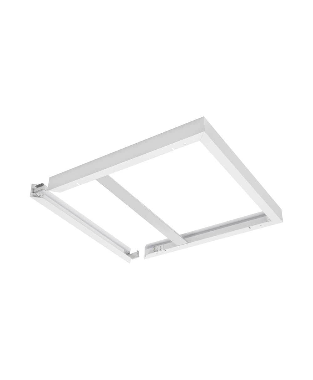 Querversteifte Rahmen für Aufbaumontage von Panel-Leuchten. Produkteigenschaften: Rahmen aus stranggepresstem Aluminium. Produktvorteile: Einbaufertig dank vormontierter magnetischer Ecken. Querversteifung für erweiterte Stabilität. Anwendungsgebiete: .