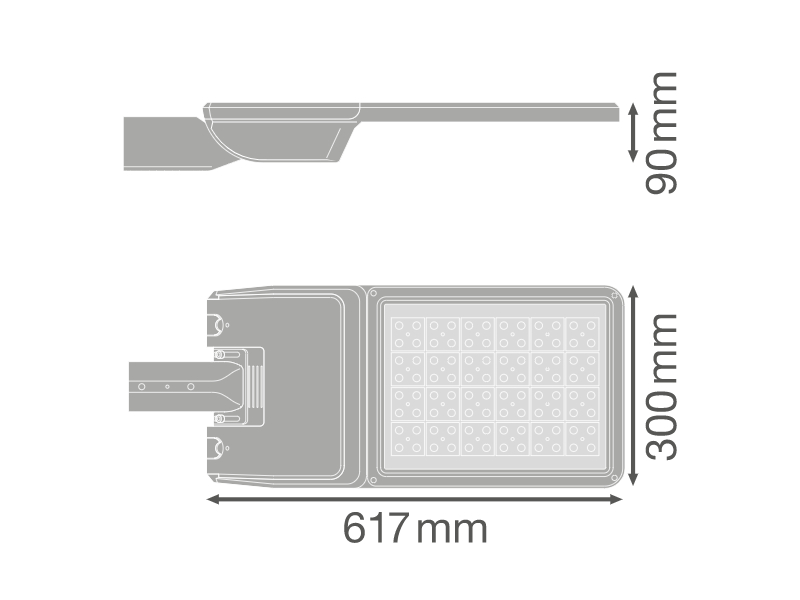 Lichtverteilung für breite Straßen und die Flächenbeleuchtung. Produkteigenschaften: Tiefstrahlende Lichtverteilung. Sehr lange Lebensdauer (L90/B10): bis zu 100.000 h (bei 25°C). Mastadapter für 48-60 mm Zopfmaß im Lieferumfang enthalten. Zusätzliche Reduzierung für 42 mm sowie Adapter für 76 mm Masten separat erhältlich. Einstellbarer Mastadapter, geeignet für Mastansatz- und Mastaufsatzmontage. +/- 15° Neigungsverstellung, bei geschlossenem Gehäuse. Hohe Lichtausbeute: bis zu 151 lm/W. Umgebungstemperaturbereich bei Betrieb: -40...50 °C. Hoher Überspannungschutz von bis zu 10 kV (L/N-GND). Schraublose Steckverbindung für eine schnelle und einfache elektrische Verbindung. Schutzklasse: II. Produktvorteile: Robustes Design und höchste Komponentenqualität für eine langanhaltende Produktleistung. Schneller und einfacher Netzanschlus, dank werkzeugloser Gehäuseöffnung und Push-Button-Anschlussklemme. Hohe Lichthomogenität. 3 Lichtfarben, für eine optimale Beleuchtung unterschiedlichster Umgebungen. Kein Lichtaustritt im oberen Halbraum (ULOR 0%) bei 0° Aufneigung. Automatische Netzunterbrechung beim Öffnen des Gehäuses. 5 Jahre Garantie. Anwendungsgebiete: Außenanwendung (IP66). Straßen der Klassen M, C und P gem. EN 13201. Parkplätze. Öffentlicher Raum. Industrie. Technische Ausstattung: Mastadapter für 42 und 76 mm Zopfmaß separat erhältlich