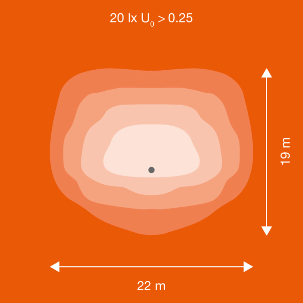Lichtverteilung für breite Straßen und die Flächenbeleuchtung. Produkteigenschaften: Tiefstrahlende Lichtverteilung. Sehr lange Lebensdauer (L90/B10): bis zu 100.000 h (bei 25°C). Mastadapter für 48-60 mm Zopfmaß im Lieferumfang enthalten. Zusätzliche Reduzierung für 42 mm sowie Adapter für 76 mm Masten separat erhältlich. Einstellbarer Mastadapter, geeignet für Mastansatz- und Mastaufsatzmontage. +/- 15° Neigungsverstellung, bei geschlossenem Gehäuse. Hohe Lichtausbeute: bis zu 144 lm/W. Umgebungstemperaturbereich bei Betrieb: -40...50 °C. Hoher Überspannungschutz von bis zu 10 kV (L/N-GND). Schutzklasse: II. Produktvorteile: Robustes Design und höchste Komponentenqualität für eine langanhaltende Produktleistung. Schneller und einfacher Netzanschlus, dank werkzeugloser Gehäuseöffnung und Push-Button-Anschlussklemme. Hohe Lichthomogenität. 3 Lichtfarben, für eine optimale Beleuchtung unterschiedlichster Umgebungen. Kein Lichtaustritt im oberen Halbraum (ULOR 0%) bei 0° Aufneigung. Automatische Netzunterbrechung beim Öffnen des Gehäuses. 5 Jahre Garantie. Anwendungsgebiete: Außenanwendung (IP66). Straßen der Klassen M, C und P gem. EN 13201. Parkplätze. Öffentlicher Raum. Industrie. Technische Ausstattung: Mastadapter für 42 und 76 mm Zopfmaß separat erhältlich