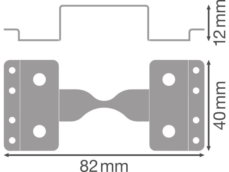 Mechanischer Verbinder für Lichtbandinstallation. Produkteigenschaften: Mechanischer H-Verbinder aus Stahl mit Schrauben für die Lichtbandverbindung. Produktvorteile: Einfache und schnelle Verbindung von Leuchten für Lichtbandinstallationen. Robuster Verbinder für langen Betrieb. Anwendungsgebiete: .