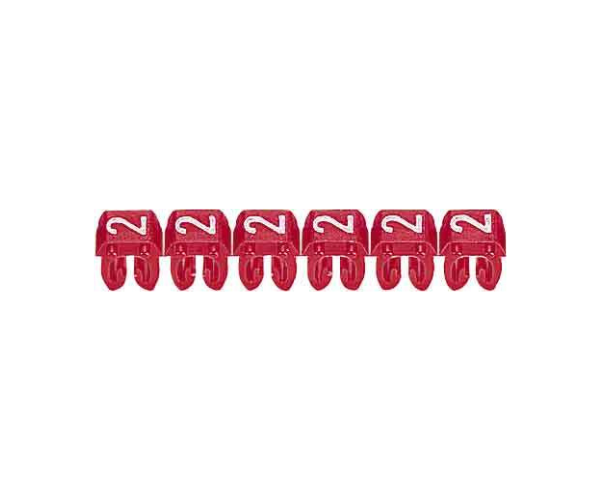 Kennzeichnungssystem CAB 3, für Leiterquerschnitt 0,5 bis 1,5 mm², Ziffer:2 (Rot), Kennzeichnung von Leitern mittels Ziffern, Buchstaben und Symbolen, zum Aufklipsen auf Leiter.