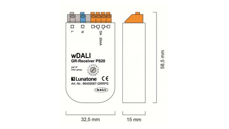 Produktinformationen "Lunatone DALI Funk-Receiver wDALI GR-Receiver PS20 - 86459587-GRRPS"